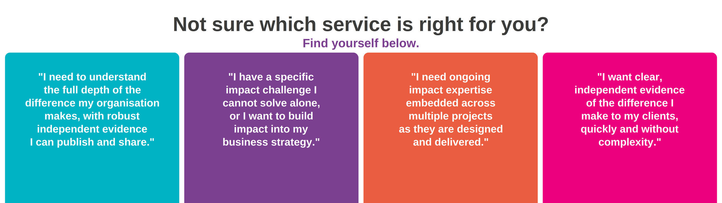 Embedded impact expertise available project by project for organisations with an ongoing need.